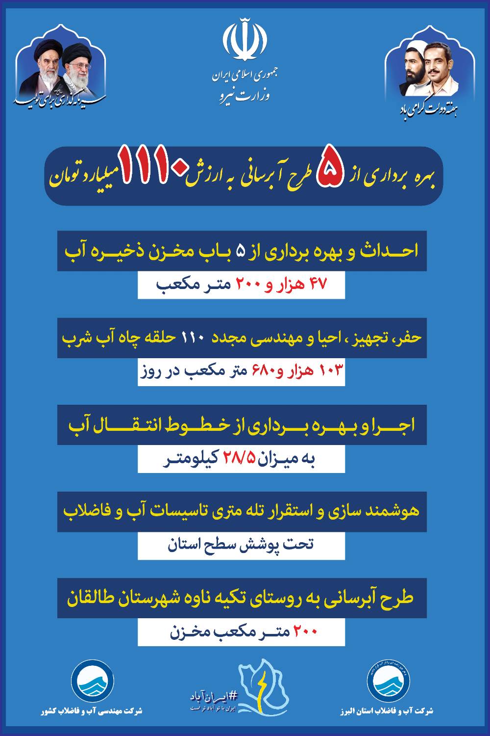 5 طرح آبرسانی در استان البرز آماده بهره برداری است