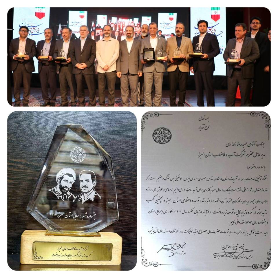 کسب رتبه برتر جشنواره شهید رجایی سال 1404 توسط شرکت آبفا البرز
