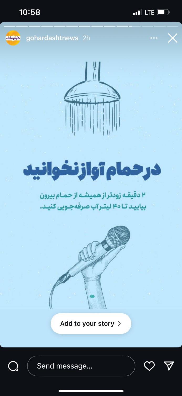 بازنشر پیام های بهینه سازی مدیریت مصرف آب از پیج خبر گوهردشت با 9 هزار مخاطب