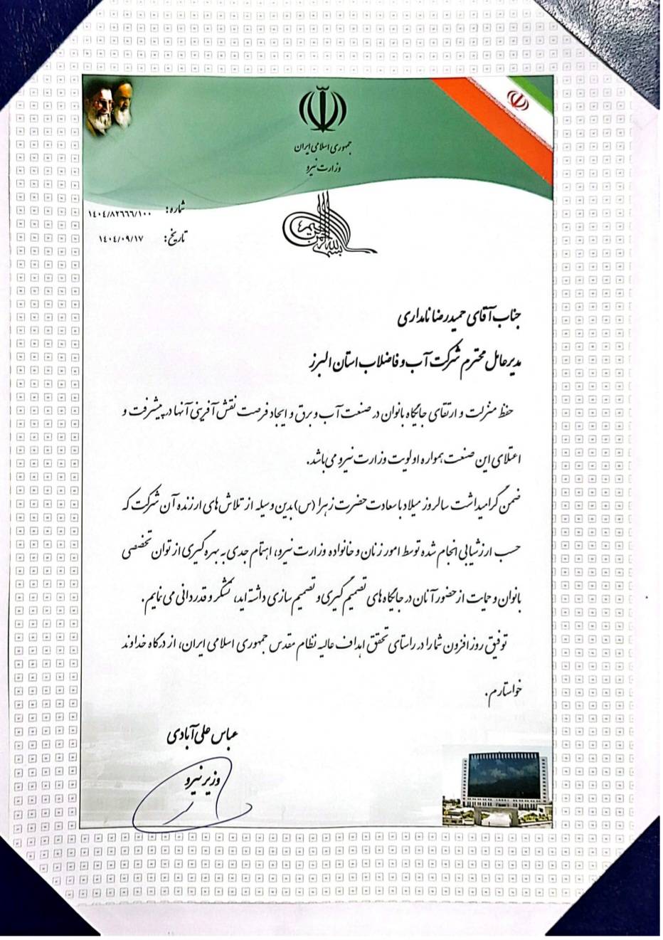 شرکت آبفا استان البرز عنوان شایسته تقدیر را کسب نمود